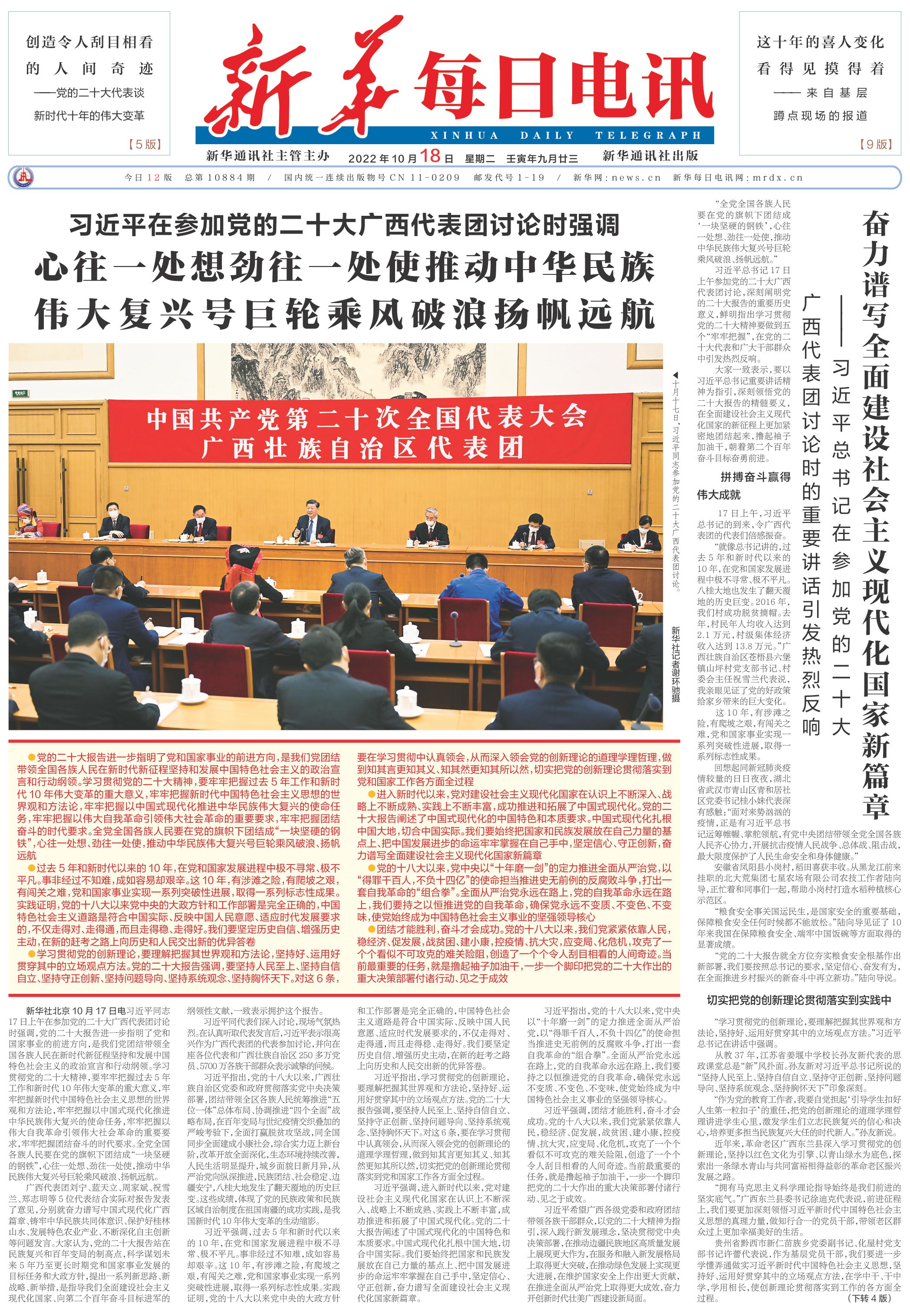 | ( 2022-10-18 ) 稿件来源:新华每日电讯 要 闻 |