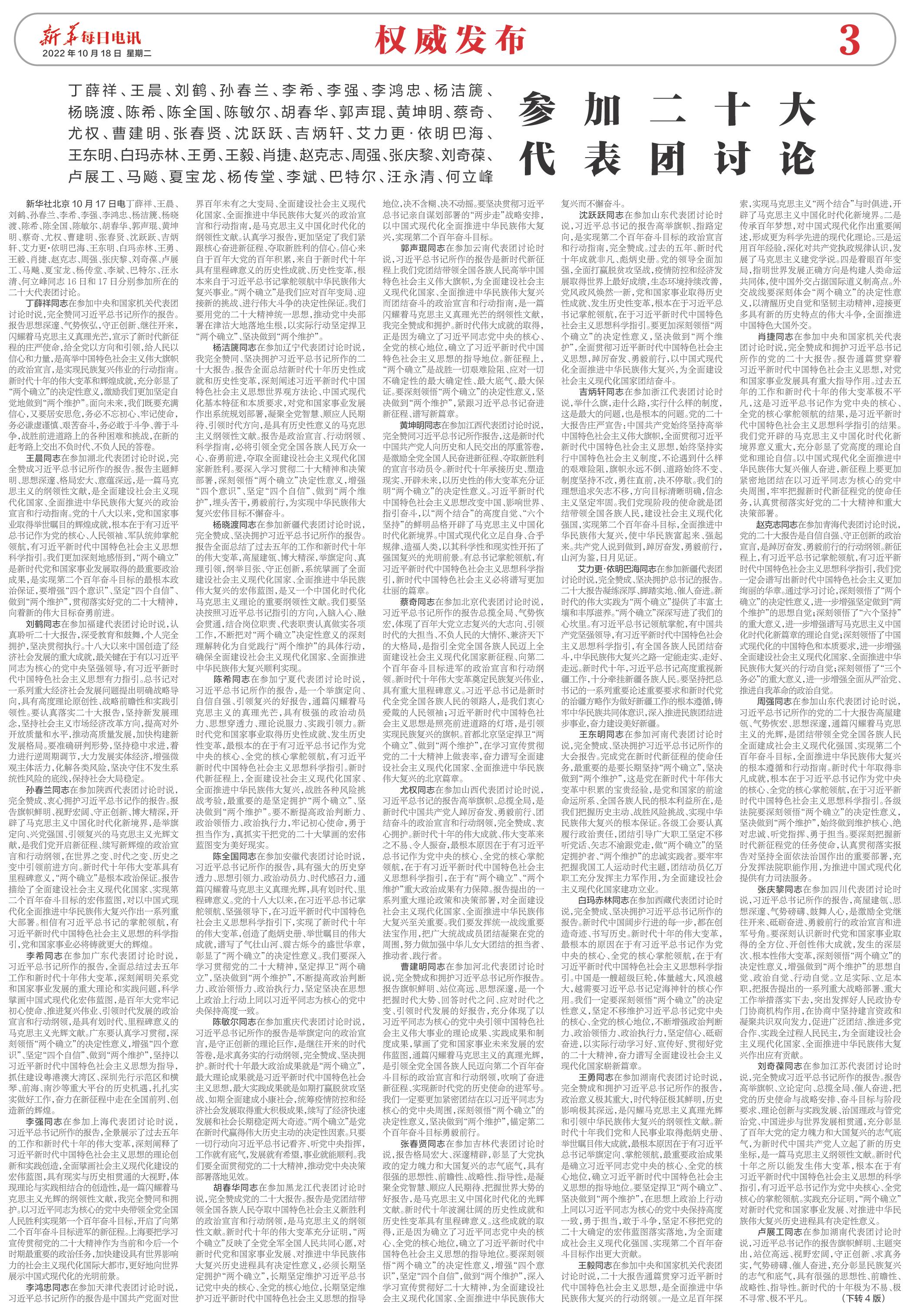 新华社北京10月17日电丁薛祥、王晨、刘鹤、孙春兰、李希、李强、李鸿忠、杨洁篪、杨晓渡、陈希、陈全国、陈敏尔、胡春华、郭声琨、黄坤明、蔡奇、尤权、曹建明、张春贤、沈跃跃、吉炳轩、艾力更·依明巴海、王东明、白玛赤林、王勇、王毅、肖捷、赵克志、周强、张庆黎、刘奇葆、卢展工、马飚、夏宝龙、杨传堂、李斌、巴特尔、汪永清、何立峰同志16日和17日分别参加所在的二十大代表团讨论。