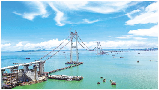 这是深中通道关键控制性工程伶仃洋大桥的建设现场(10月16日摄,无人机照片)。新华社发(张政摄) |