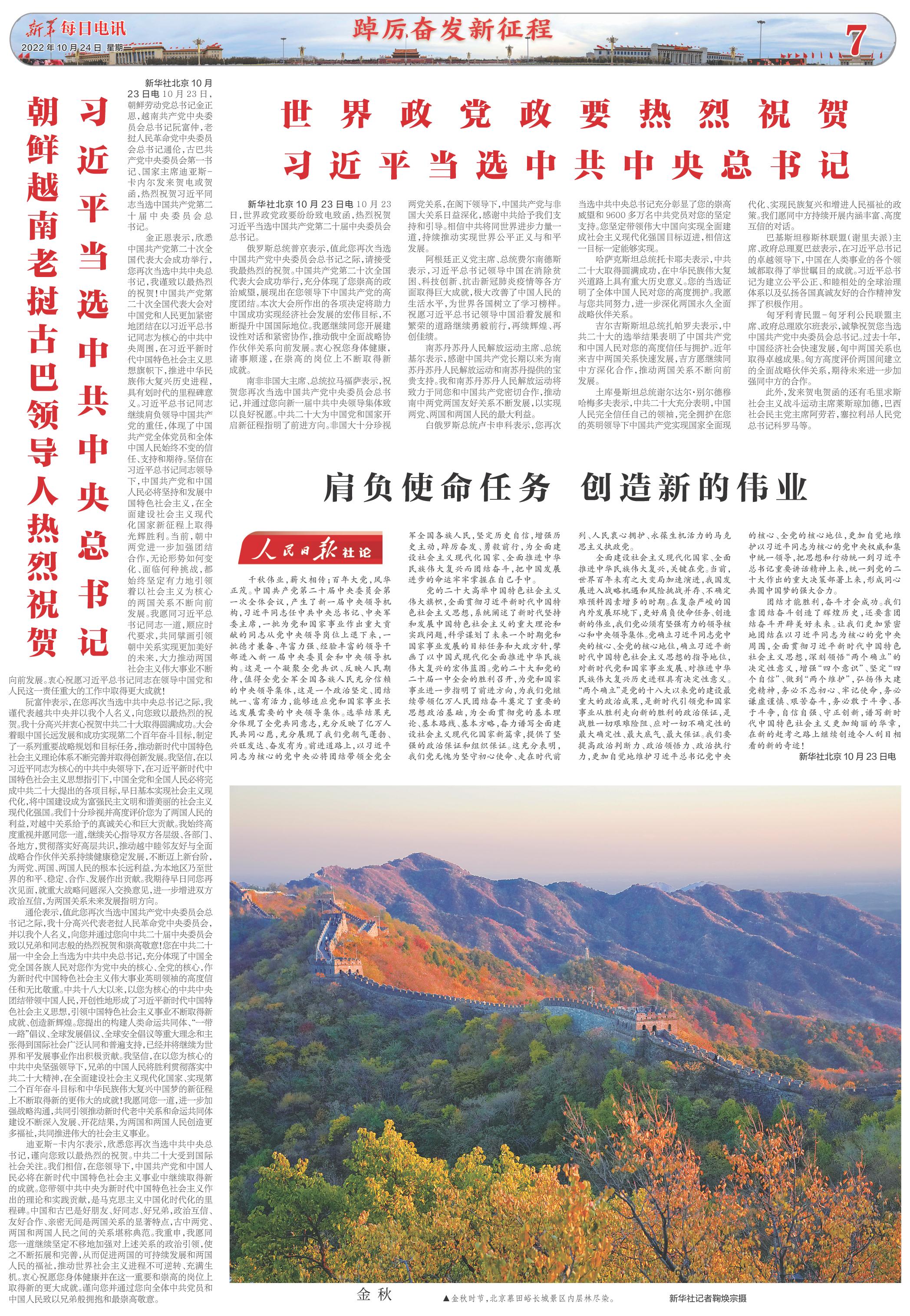 | ( 2022-10-24 ) 稿件来源:新华每日电讯 踔厉奋发新征程 |