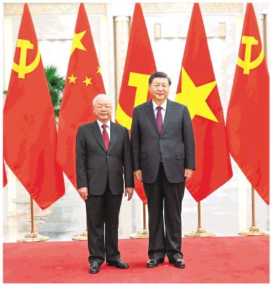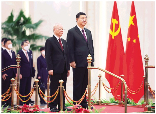 习近平热烈欢迎阮富仲在中共二十大召开后即对中国进行正式访问。习近平表示,近年来,我同阮富仲总书记同志通过多种方式保持密切沟通,就引领中越关系发展达成许多重要共识,这些共识得到全面落实,取得显著成效。
