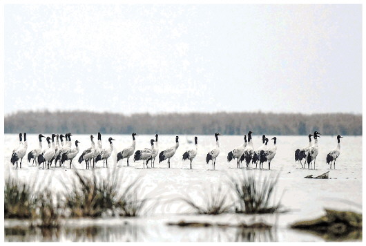 贵州草海迎来今年首批越冬黑颈鹤 |