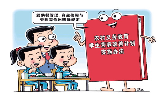 新华社北京11月11日电(记者胡浩、王鹏)记者11日从教育部了解到,为进一步加强和改进农村义务教育学生营养改善计划工作,持续巩固营养改善计划试点成果,教育部会同有关部门制定并印发了《农村义务教育学生营养改善计划实施办法》,对供餐管理、资金使用与管理、采购管理、营养健康监测与教育、应急事件处置等作出明确要求。