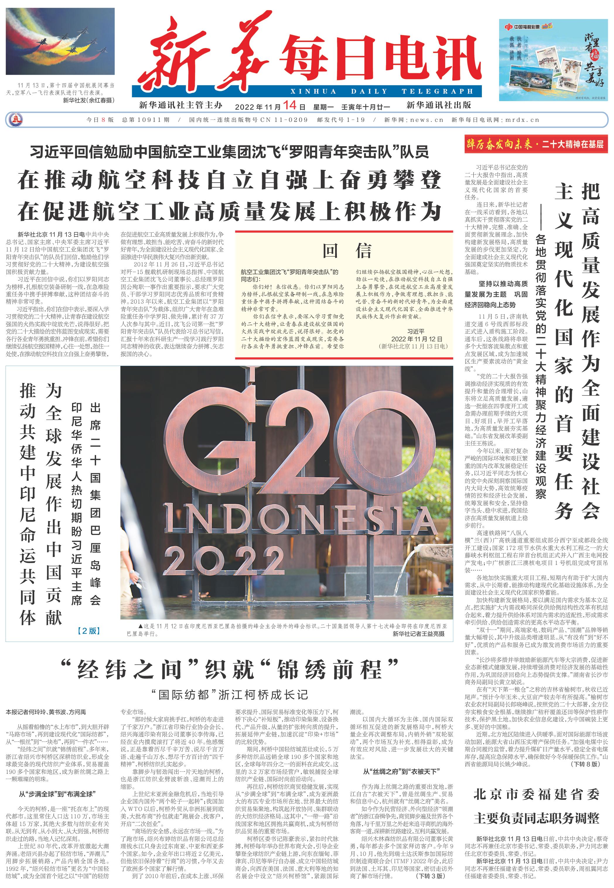 ( 2022-11-14 ) 稿件来源:新华每日电讯 要 闻
