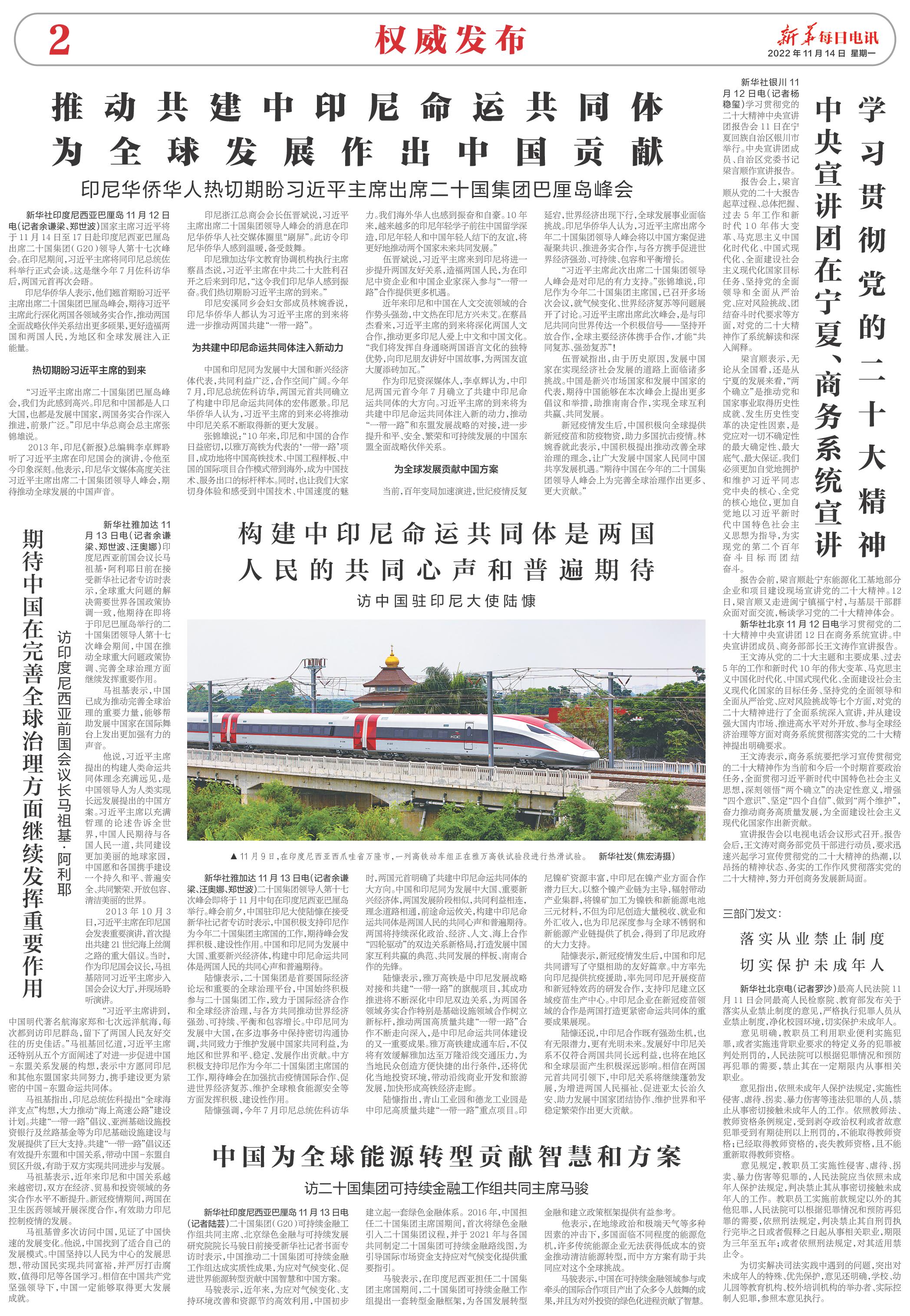 | ( 2022-11-14 ) 稿件来源:新华每日电讯 权威发布 |