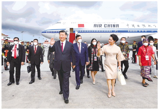 ▲当地时间11月14日下午,国家主席习近平乘坐专机抵达印度尼西亚巴厘岛努拉莱伊国际机场,应邀出席二十国集团领导人第十七次峰会。这是习近平和夫人彭丽媛在机场受到印尼对华合作牵头人、海洋与投资统筹部部长卢胡特,巴厘省省长科斯特等高级官员热情迎接。