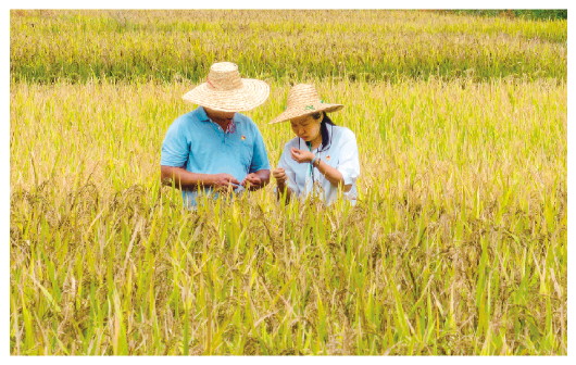 ▲在钦州市钦北区贵台镇百美村委那疋村,利远远(右)和村党支部书记梁显茂在查看紫米的饱满度(11月11日摄)。广西钦州市钦北区贵台镇党委书记利远远是党的二十大代表,曾获得全国“人民满意的公务员”等荣誉称号。回到工作岗位后,她把党的二十大精神和自己的学习心得体会及时传递给山村百姓,并带领群众进行乡村振兴建设。 新华社记者张爱林摄