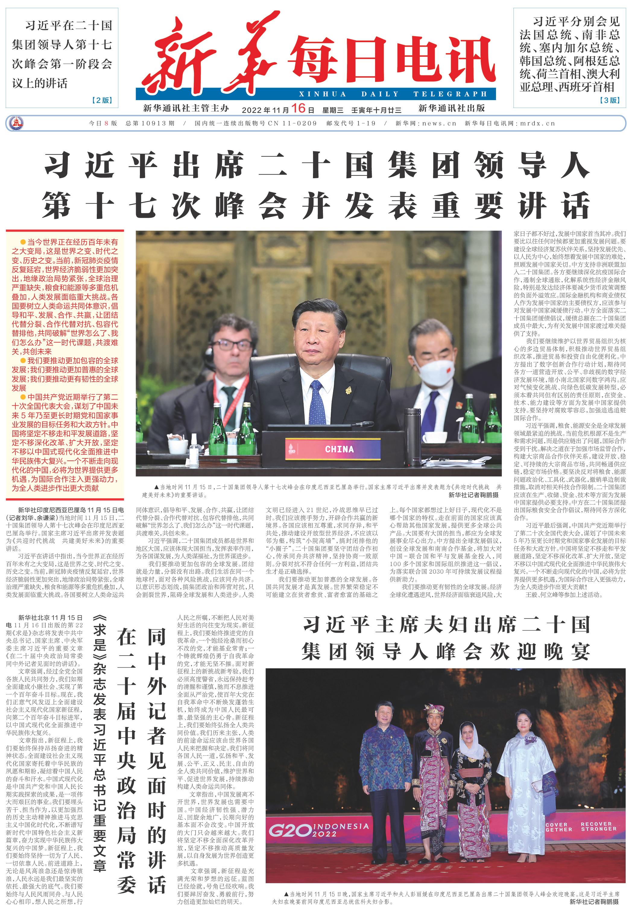 | ( 2022-11-16 ) 稿件来源:新华每日电讯 要 闻 |