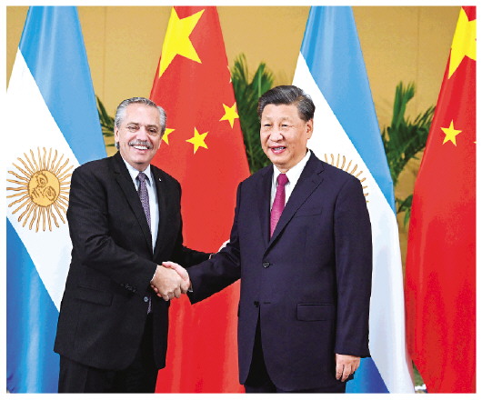 习近平强调,中方愿同阿方加强治国理政经验交流,支持彼此走符合本国国情、顺应人民期待和时代要求的发展道路,支持彼此维护主权、安全、发展利益。双方应该开展文化、媒体、教育、体育、青年、地方等领域交流合作,加快推进高质量共建“一带一路”合作,深化拓展农业、能源、基础设施、航天等领域合作。中方愿进口更多阿根廷优质产品。