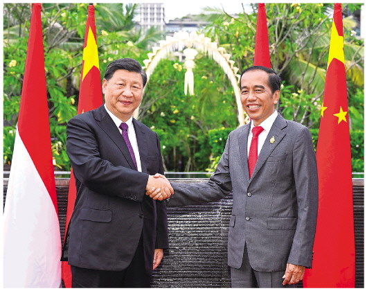 当地时间11月16日晚,国家主席习近平在巴厘岛同印度尼西亚总统佐科举行会谈。