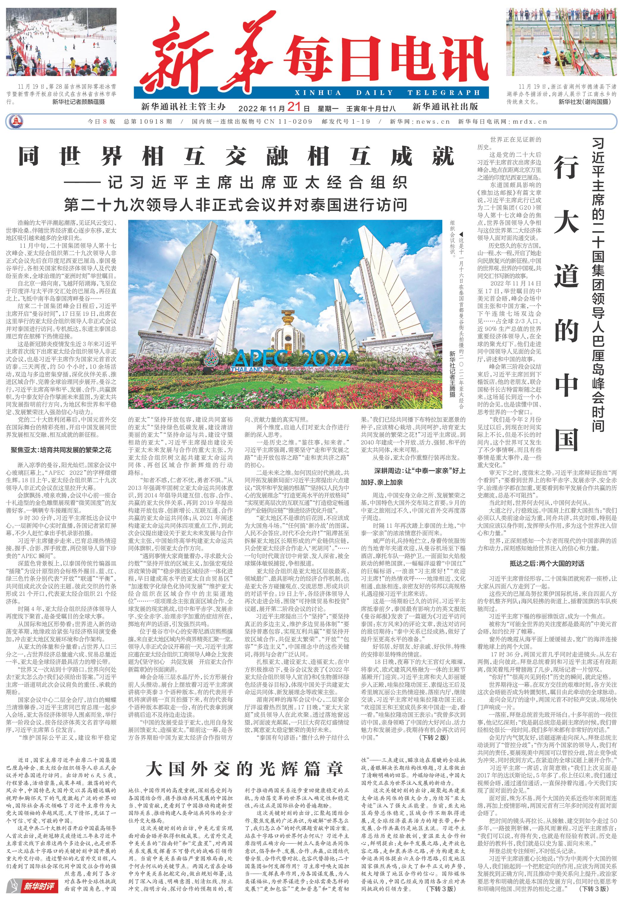 这是新冠肺炎疫情发生近3年来习近平主席首次线下出席亚太经合组织领导人非正式会议,也是习近平主席作为国家元首首次访泰。三天两夜,约50个小时,10余场活动,双边与多边密集穿插,深化伙伴关系、推进区域合作、完善全球治理同步展开。曼谷之行,习近平主席高举和平、发展、合作、共赢旗帜,为中泰友好合作擘画未来蓝图,为亚太共同发展指明前行方向,为地区和世界和平稳定、发展繁荣注入强劲信心与动力。