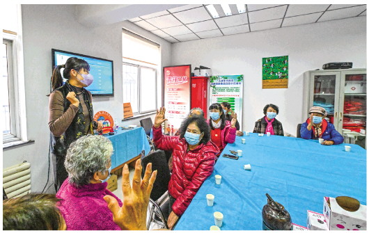 11月22日,在天津市河西区越秀路街道港云里社区党群服务中心,一场有关中国传统文化的老年课堂正在举办。