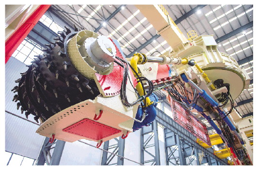 ▲11月29日拍摄的“梦想号”竖井掘进机局部。