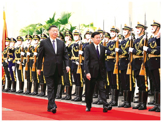 习近平强调,中老两国山同脉、水同源,自古以来亲仁善邻。2019年4月关于构建中老命运共同体行动计划签署以来,中老双方凝心聚力,推动中老命运共同体建设取得丰硕成果,特别是将中老铁路打造成为中老人民的发展路、幸福路、友谊路,不仅为两国人民带来巨大福祉,也为共建“一带一路”和推动构建人类命运共同体提供了示范。新形势下,双方要牢牢把握两国关系正确方向,确保中老命运共同体建设不偏航、不失速;不断夯实安全根基,共同维护政治安全,推进执法安全和防务合作;要深化利益融合和发展战略对接,推动本地区互联互通和协调发展;深化经贸投资往来,中方将鼓励更多中国企业赴老挝投资,欢迎老方更多优质产品进入中国市场,中方将继续为老方纾解当前面临的困难提供帮助;持续拓展科技、教育、文化、旅游、卫生、青年等领域交流合作,增进民心相通。中方愿同老方深化在澜湄合作、中国-东盟合作框架内的协调配合,弘扬全人类共同价值,共同维护世界和平稳定和发展繁荣。