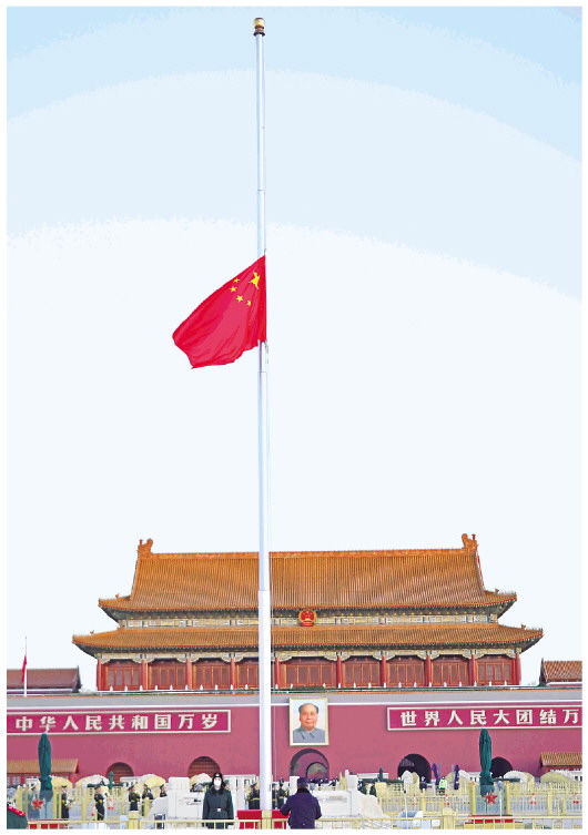 12月1日,北京天安门下半旗志哀,悼念江泽民同志逝世。 新华社记者才扬摄