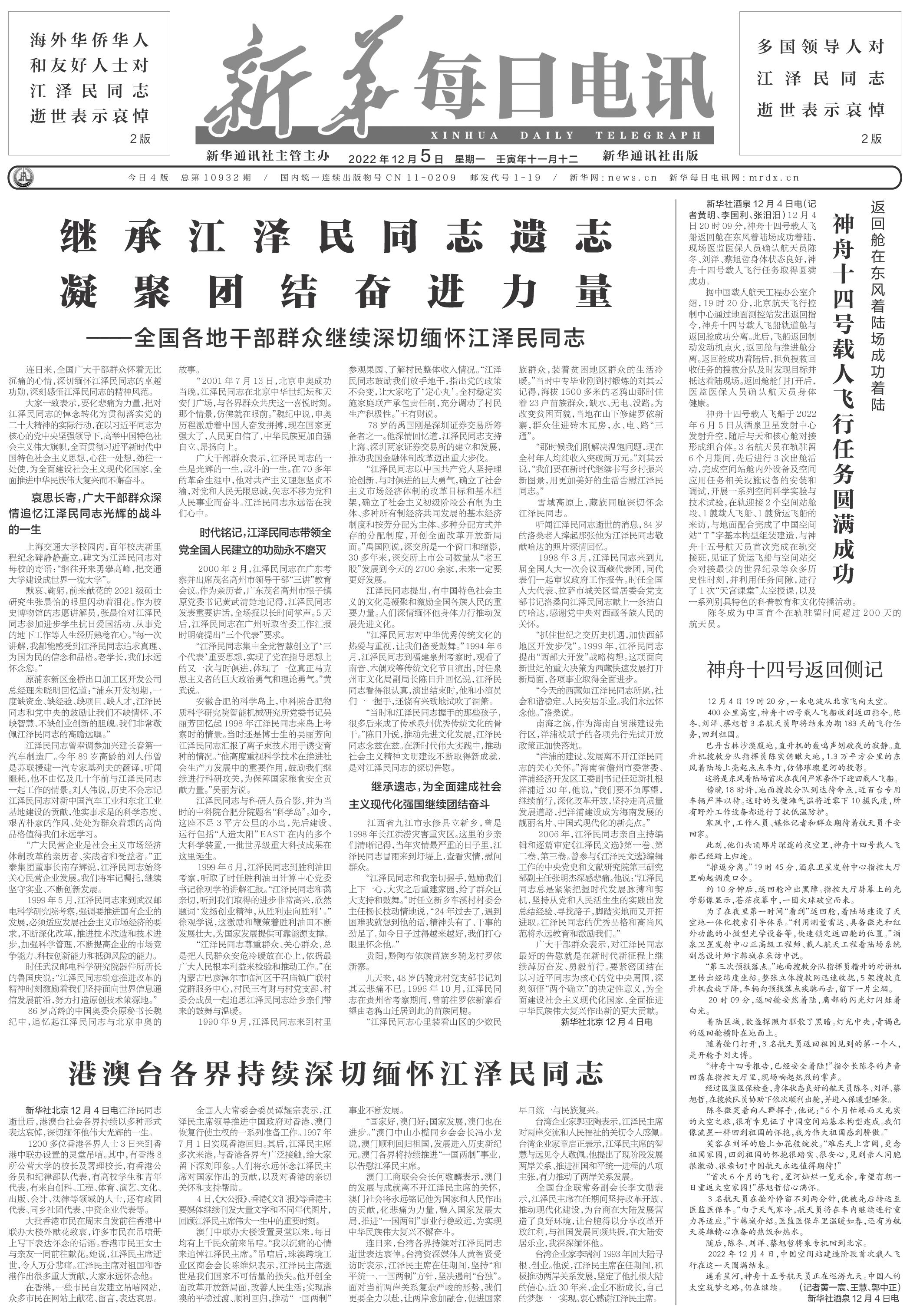 4日,《大公报》、香港《文汇报》等香港主要媒体继续刊发大量文字和不同年代图片,回顾江泽民主席伟大一生中的重要时刻。