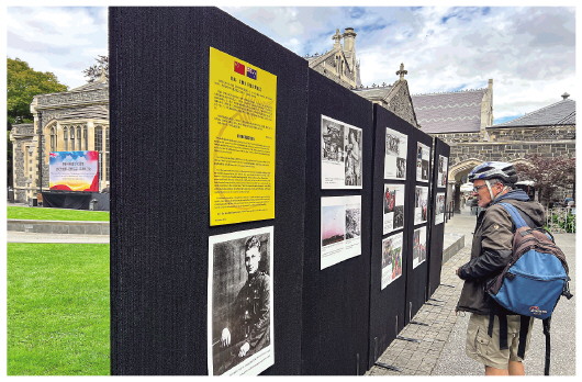 12月2日,人们在新西兰克赖斯特彻奇纪念路易·艾黎诞辰125周年活动上观看图片展。