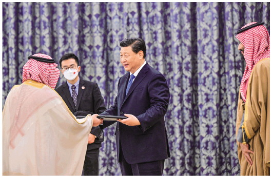当地时间12月8日下午,国家主席习近平在利雅得王宫出席苏欧德国王大学名誉博士学位授予仪式。沙特王储兼首相穆罕默德陪同出席仪式。