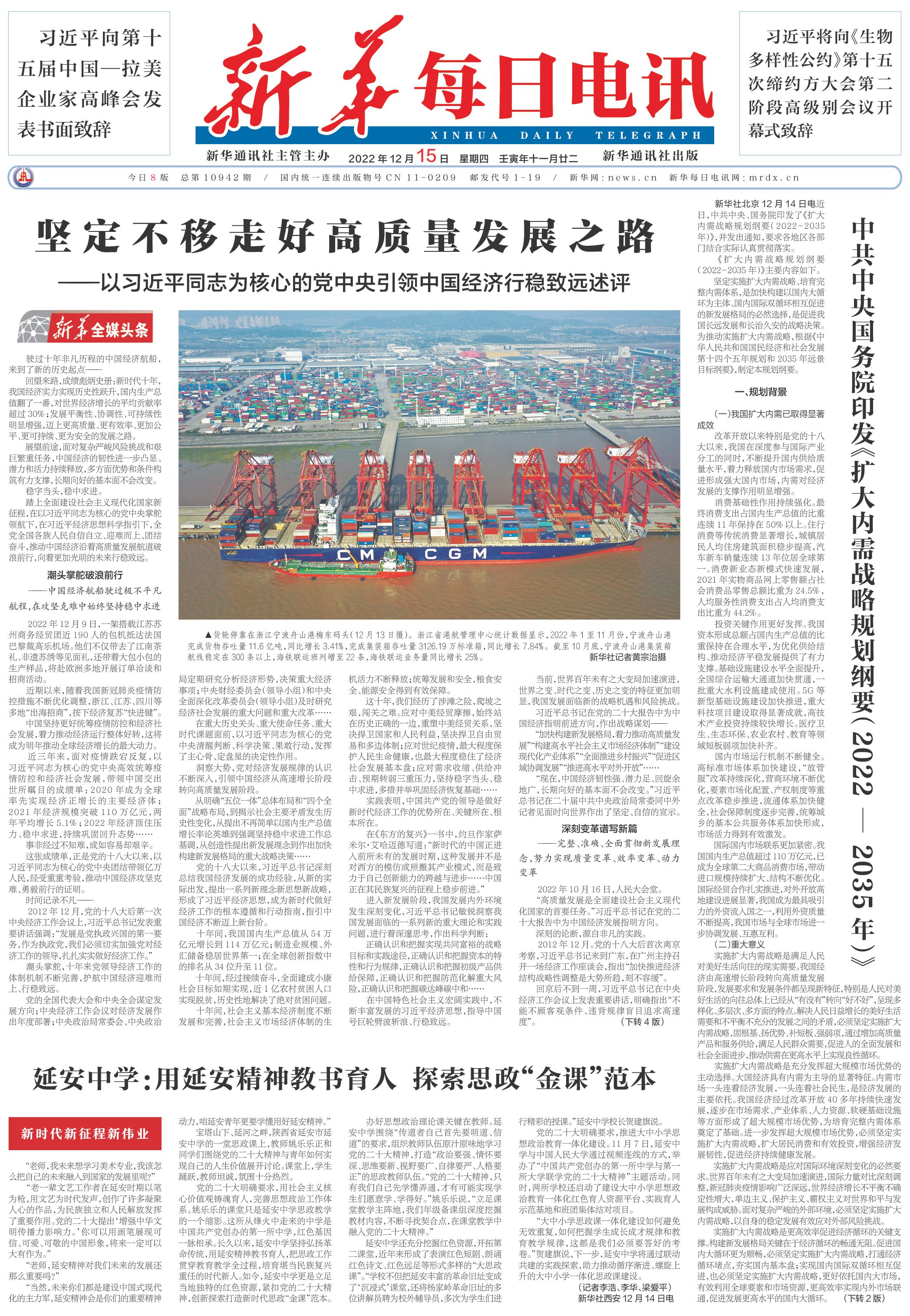 | ( 2022-12-15 ) 稿件来源:新华每日电讯 要 闻 |
