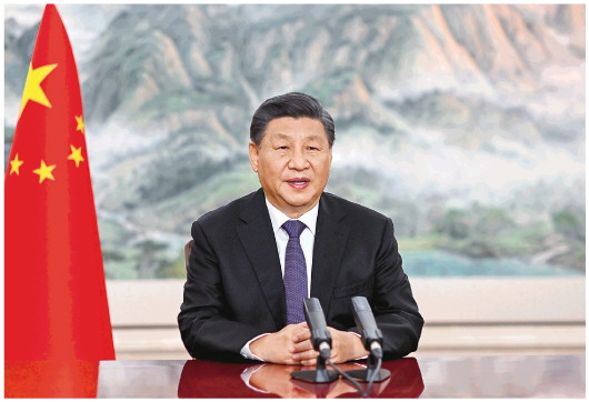 12月15日晚,国家主席习近平以视频方式向在加拿大蒙特利尔举行的《生物多样性公约》第十五次缔约方大会第二阶段高级别会议开幕式致辞。 新华社记者李学仁摄