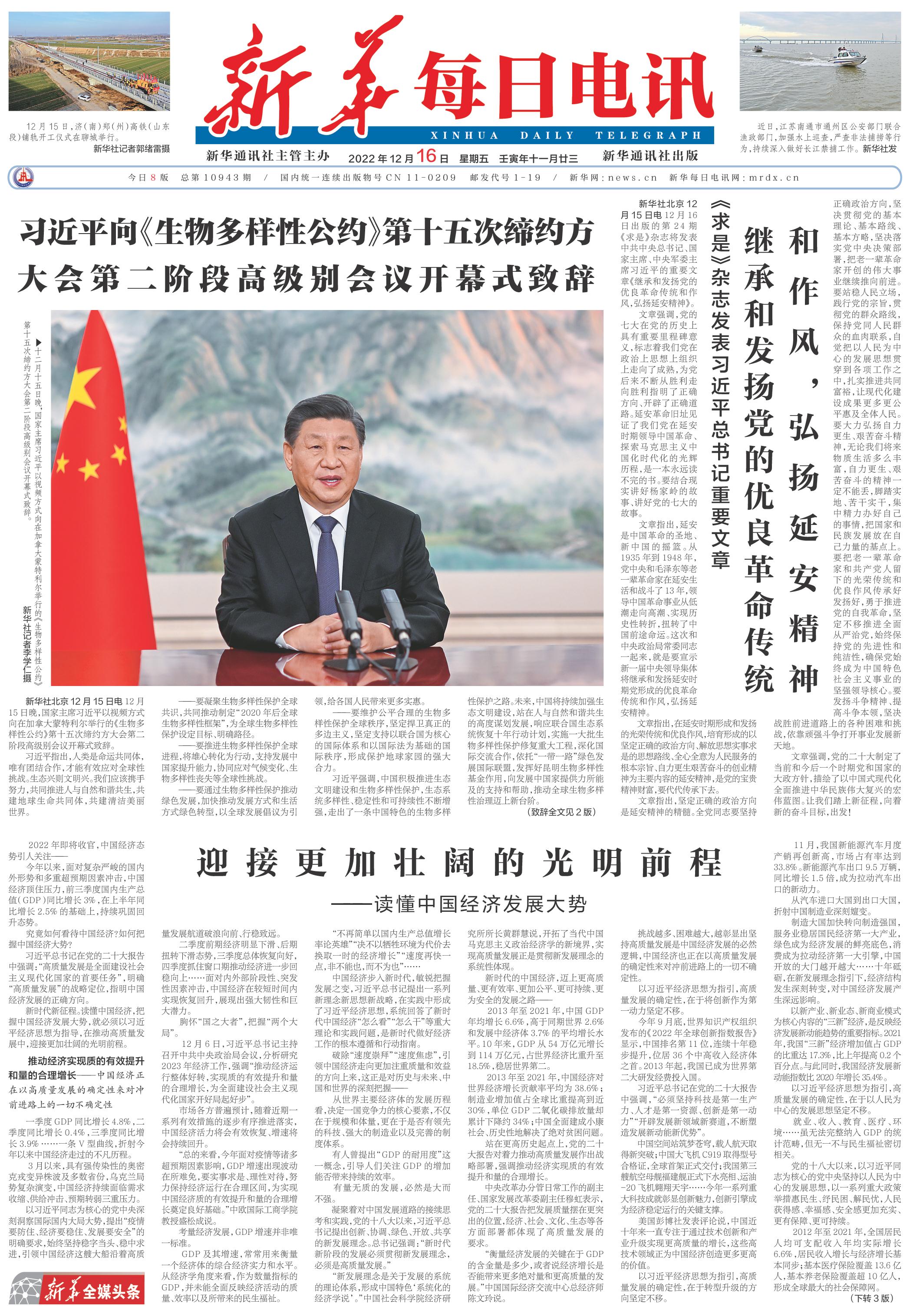 | ( 2022-12-16 ) 稿件来源:新华每日电讯 要 闻 |