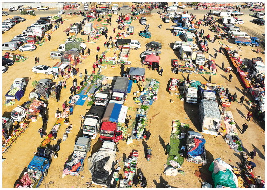 ▲12月24日,在山东省青岛市城阳区流亭街道双埠社区拍摄的年货大集(无人机照片)。新年临近,山东省青岛市城阳区流亭街道有序开放年货大集,满足百姓生活需求。 新华社发(王海滨摄)