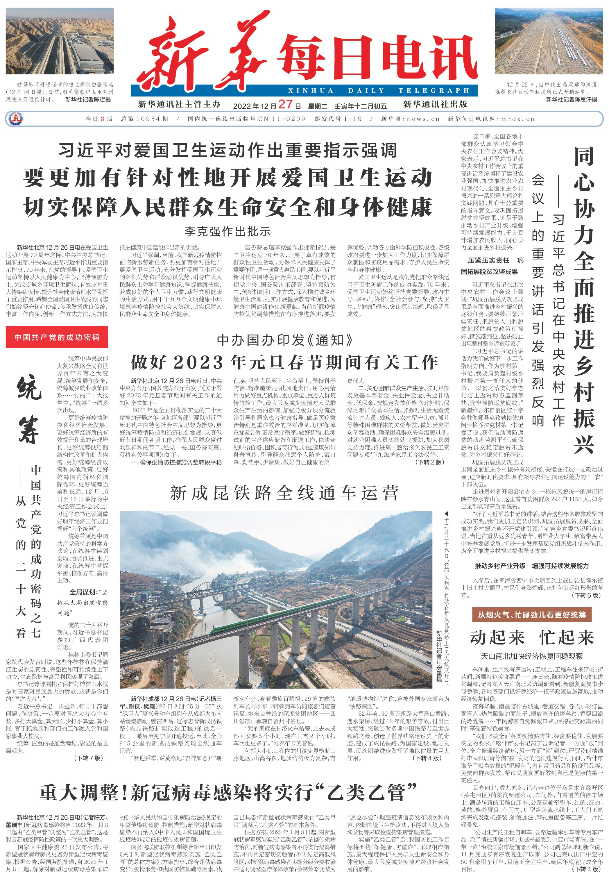 | ( 2022-12-27 ) 稿件来源:新华每日电讯 要 闻 |