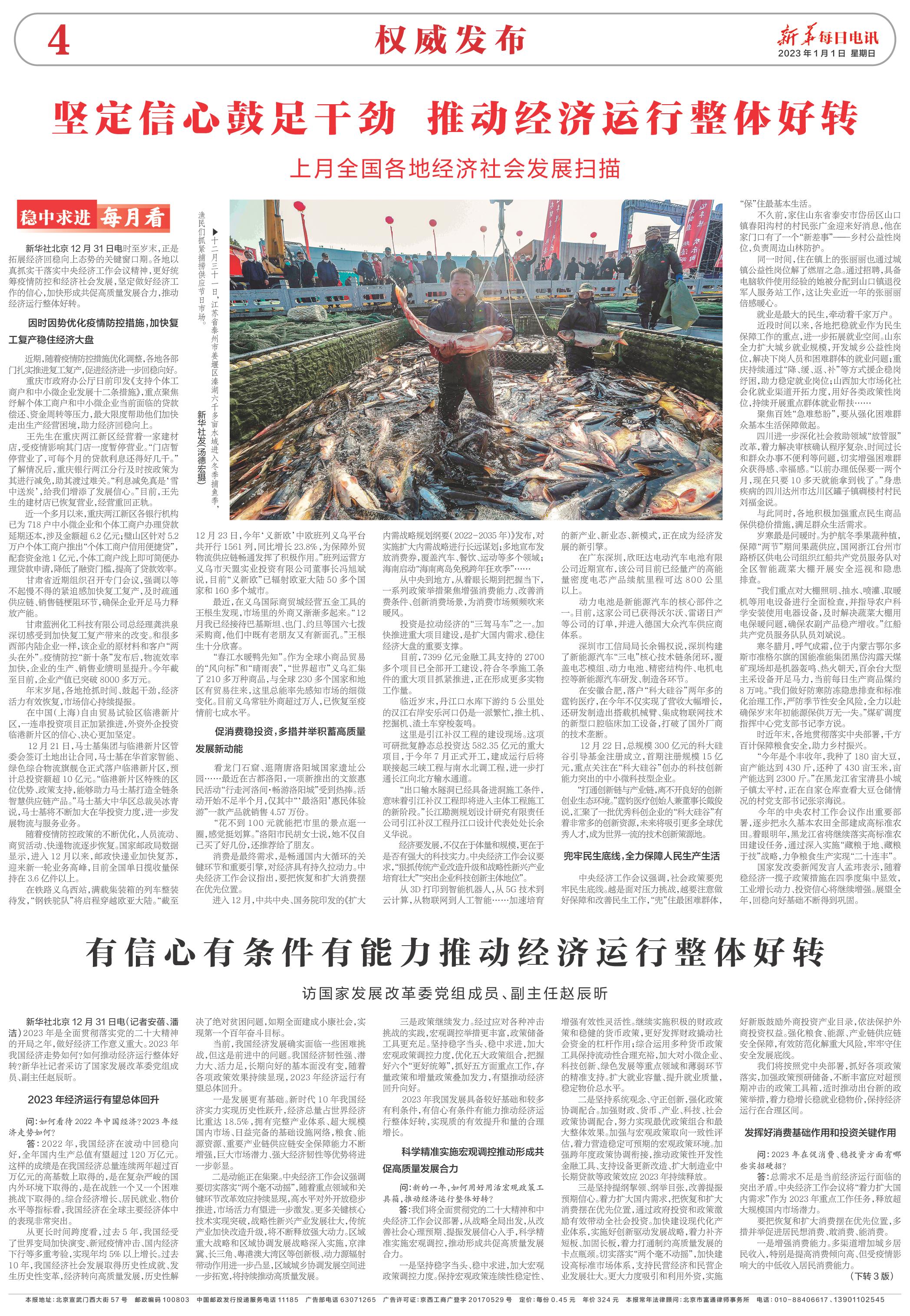 新华社北京12月31日电时至岁末,正是拓展经济回稳向上态势的关键窗口期。各地以真抓实干落实中央经济工作会议精神,更好统筹疫情防控和经济社会发展,坚定做好经济工作的信心,加快形成共促高质量发展合力,推动经济运行整体好转。