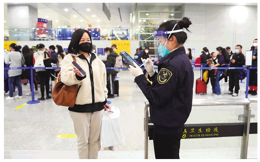 根据国务院联防联控机制的统一部署,入境管理政策进一步明确和细化。在浦东机场的海关查验处,旅客只需要出示二维码来确认自己的填报信息,电子屏则会自动检测旅客的体温,过程相当流畅。据上海海关工作人员介绍,入境人员自1月8日起向海关申报入境前48小时内新型冠状病毒核酸检测结果,海关对健康申报正常且口岸常规检疫无异常的入境人员,放行进入社会面;对健康申报异常或出现发热等症状人员,由海关进行抗原检测,根据抗原检测结果和常规检疫情况实施分类处置。