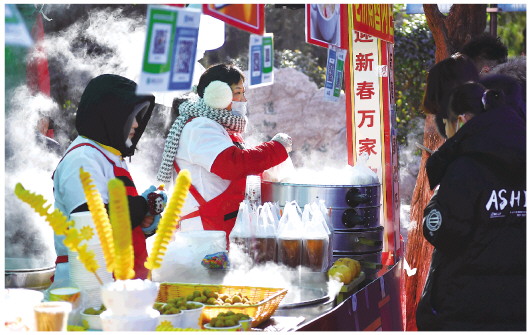 ▲1月25日,游客在济南千佛山新春游园会上选购美食。逛庙会,赶大集,红红火火过大年。在祖国的天南地北、城市乡村,人们赏民俗,看表演,品美食……大街小巷到处洋溢着热腾腾的“烟火气”,汇成一幅幅充满活力的新春图景。 新华社记者朱峥摄