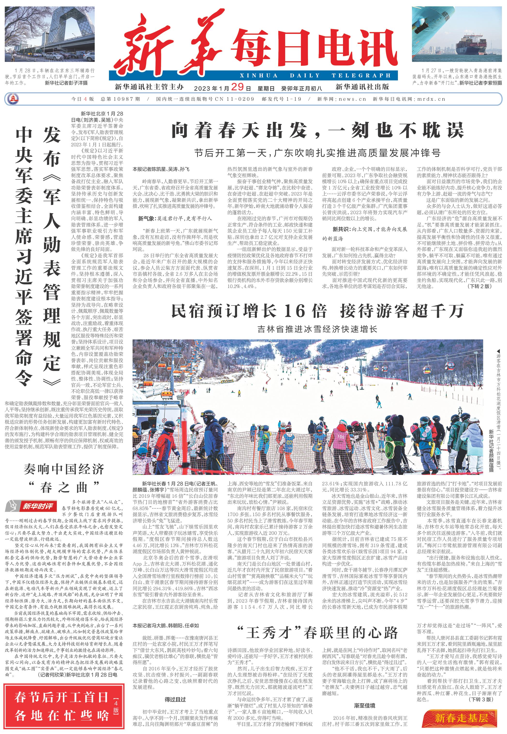 | ( 2023-01-29 ) 稿件来源:新华每日电讯 要 闻 |