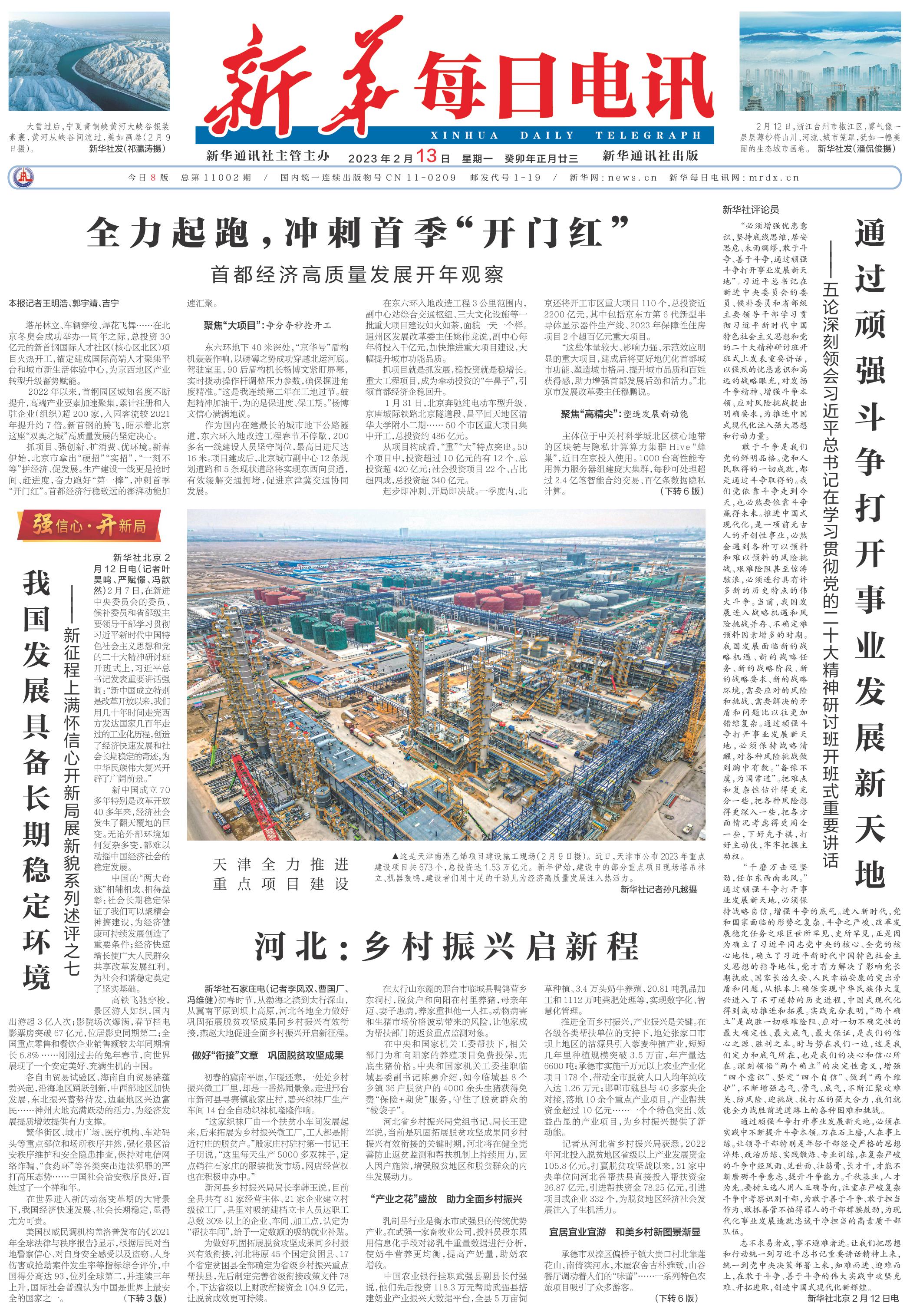 | ( 2023-02-13 ) 稿件来源:新华每日电讯 要 闻 |