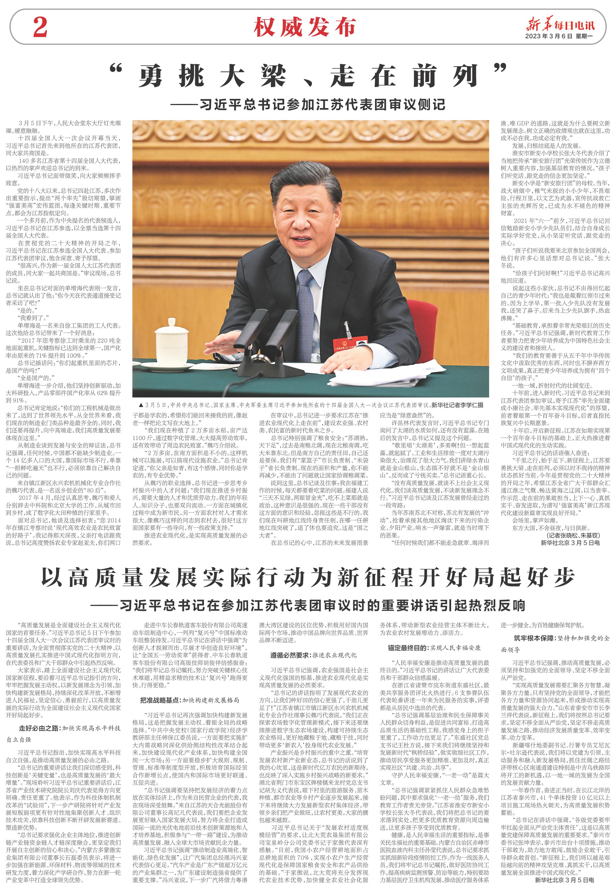 在贯彻党的二十大精神的开局之年,习近平总书记在江苏参选全国人大代表、参加江苏代表团审议,饱含深意、寄予厚望。