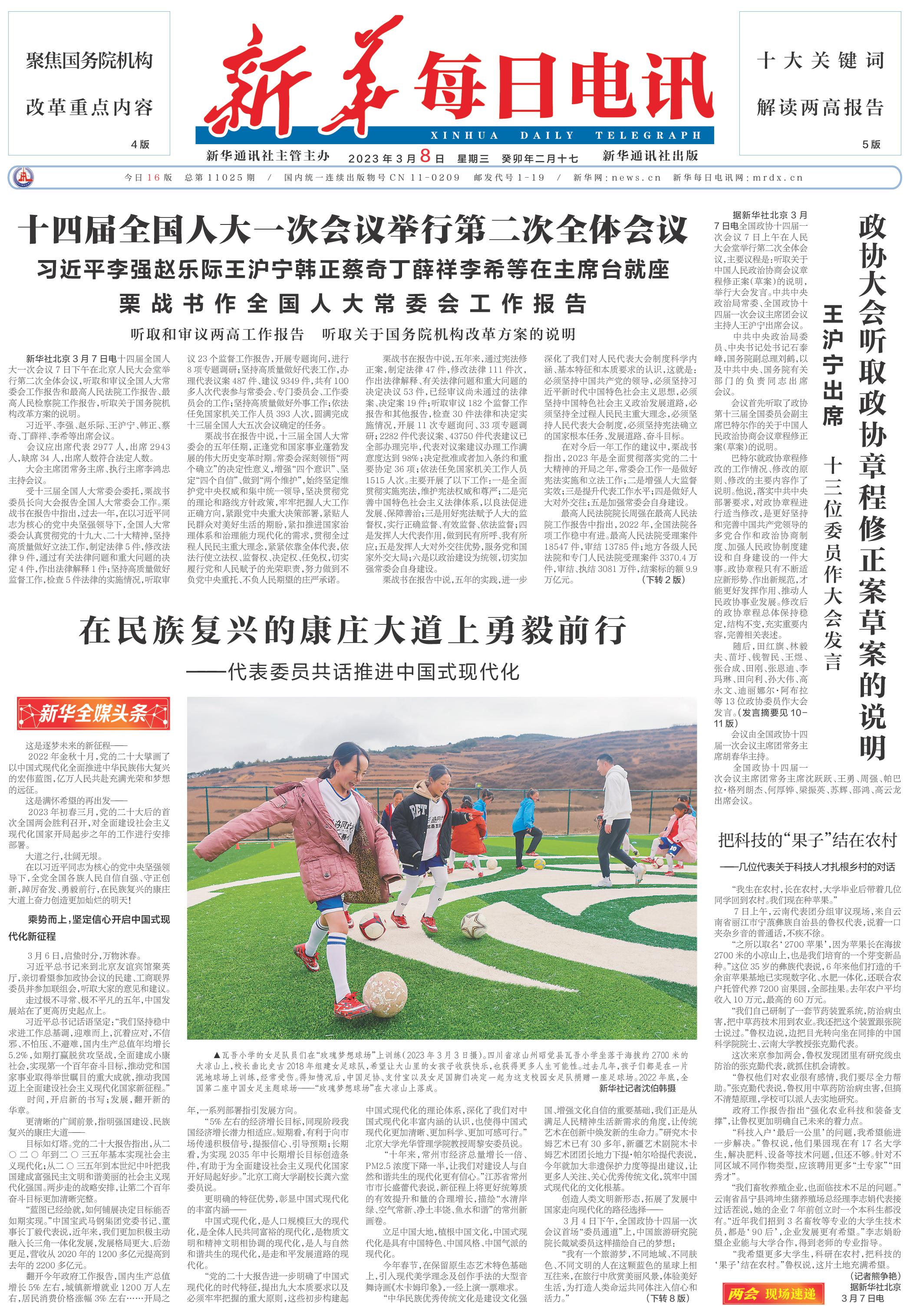 | ( 2023-03-08 ) 稿件来源:新华每日电讯 要 闻 |