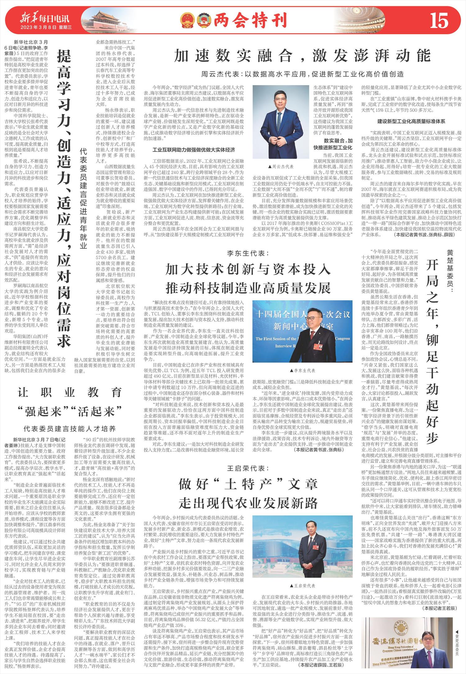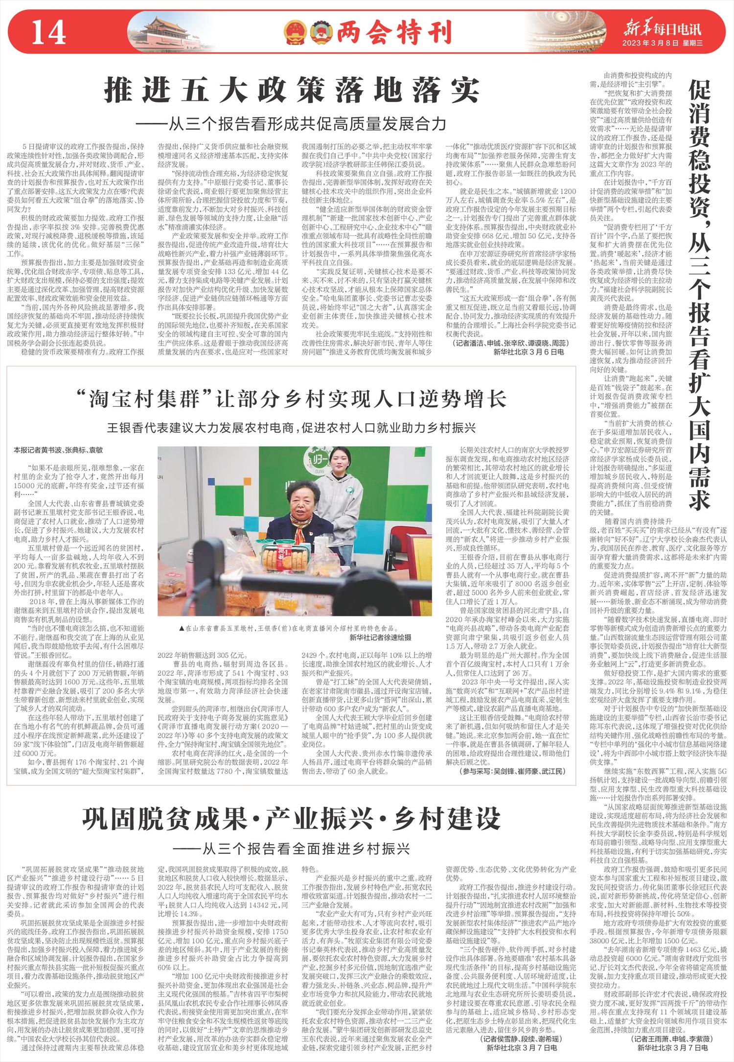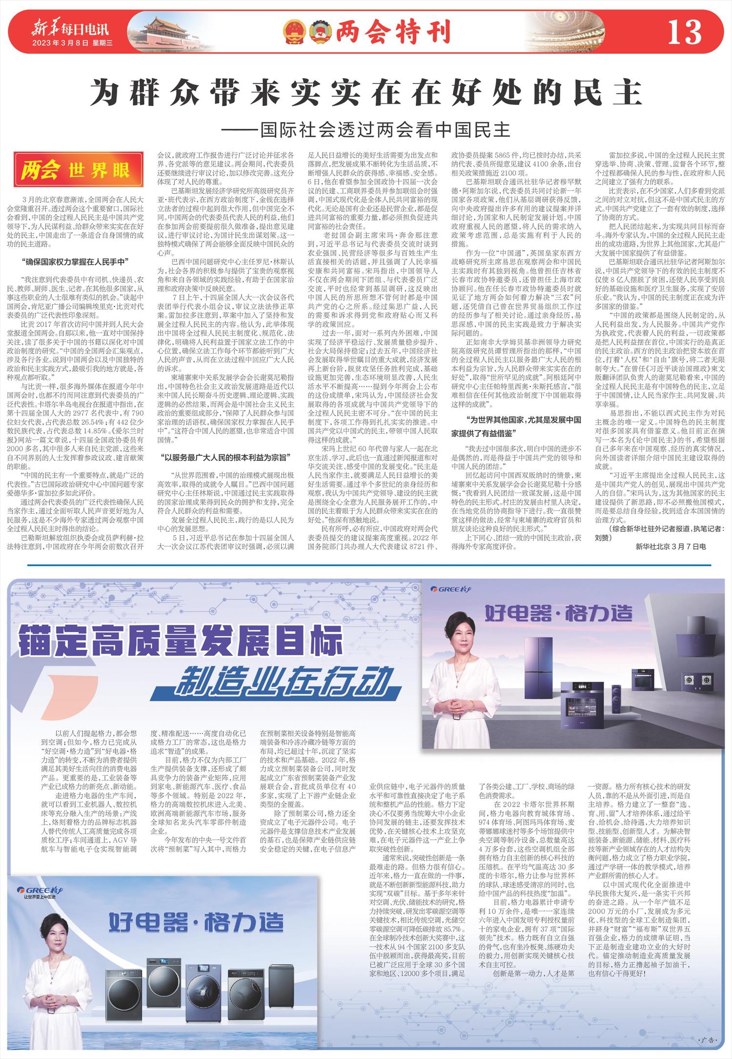 | ( 2023-03-08 ) 稿件来源:新华每日电讯 两会特刊 |