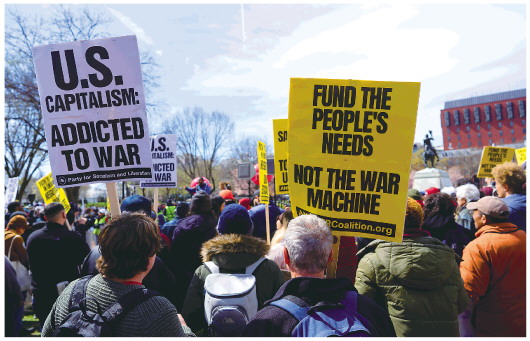 美国当下通货膨胀严峻,银行危机加剧经济衰退预期,俄亥俄州“毒列车”脱轨事故持续发酵暴露监管和基础设施不足……反战人士呼吁美国把注意力和资源放到解决自身问题上,不要再为运转“战争机器”而烧钱。