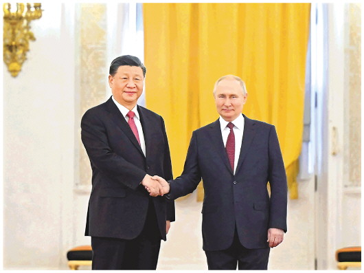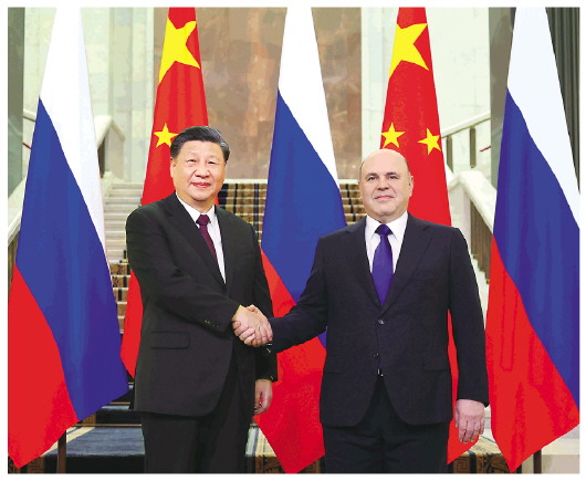 习近平指出,中俄是相互最大邻国,又是全面战略协作伙伴,保持中俄关系健康稳定发展,符合两国关系的历史逻辑和两国人民的根本利益。中国成功召开了中共二十大,前不久全国两会选举产生了新一届国家机构领导人,中国党、国家和人民空前团结,正在全面推进中国式现代化。中国新一届政府重视发展中俄全面战略协作伙伴关系,愿同俄方通过两国政府总理定期会晤等机制化交往渠道,推动实现两国合作新目标,取得更多新成果。