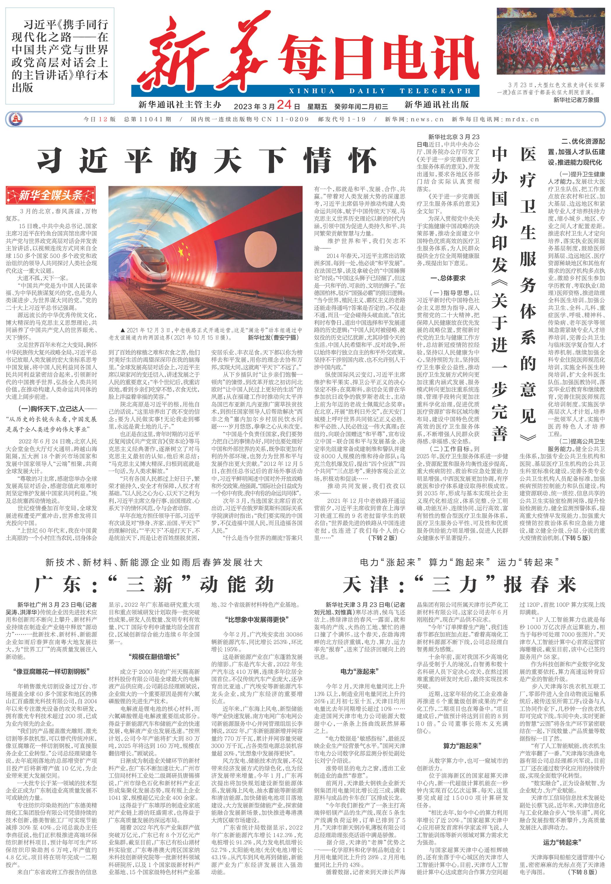 | ( 2023-03-24 ) 稿件来源:新华每日电讯 要 闻 |