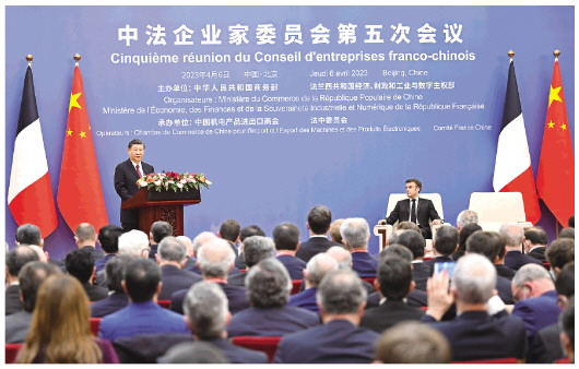 新华社北京4月6日电(记者刘华)4月6日下午,国家主席习近平在北京同法国总统马克龙共同出席中法企业家委员会第五次会议闭幕式并致辞。