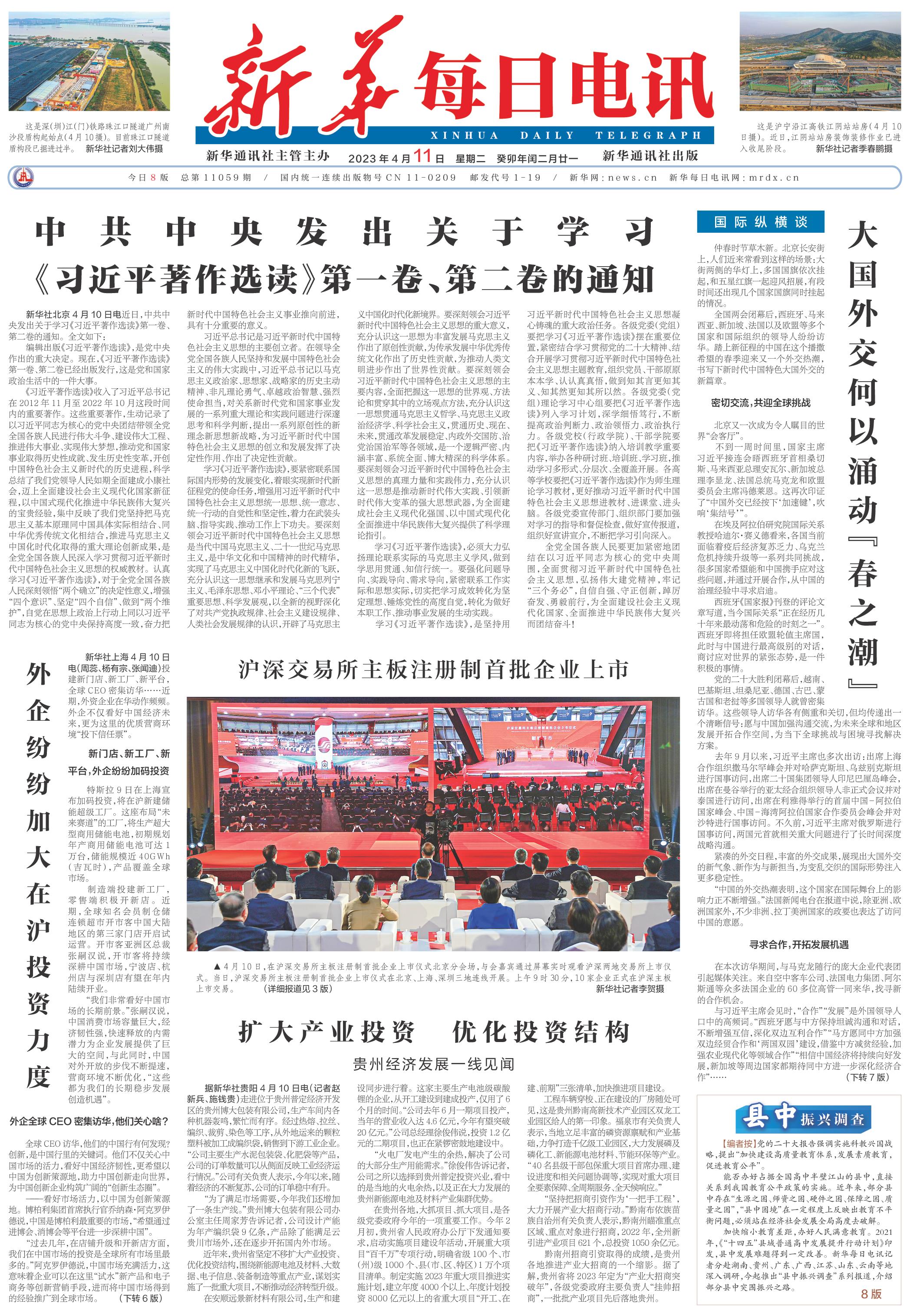 | ( 2023-04-11 ) 稿件来源:新华每日电讯 要 闻 |