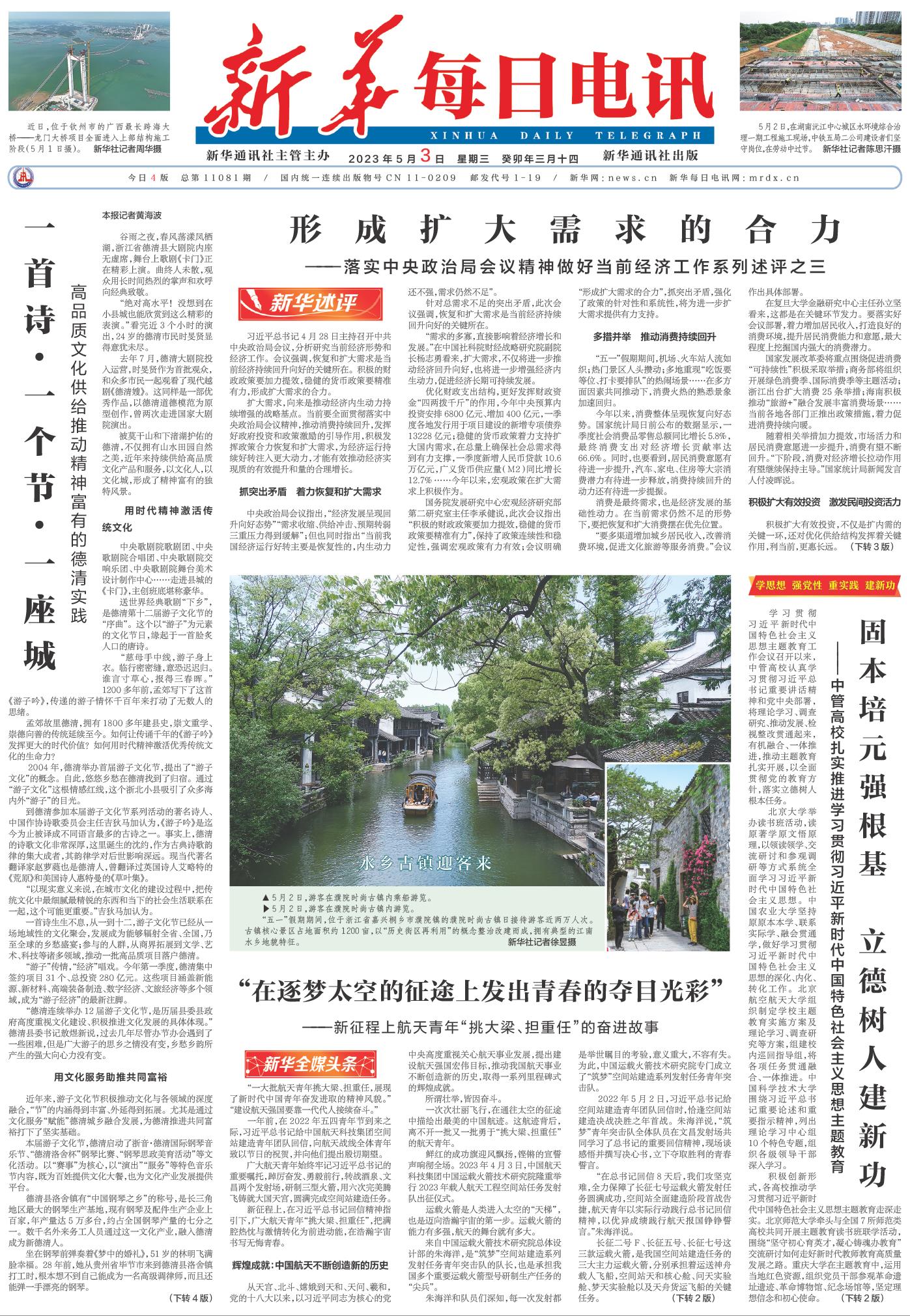 | ( 2023-05-03 ) 稿件来源:新华每日电讯 要 闻 |