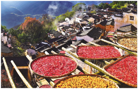 ▲篁岭古村居民晾晒的农作物。   新华社发(曹加祥摄)