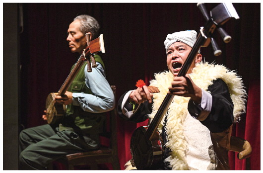 ▲陕北说书艺人陈文艺(右)在陕北民歌博物馆表演陕北说书。 新华社记者陶明摄 |