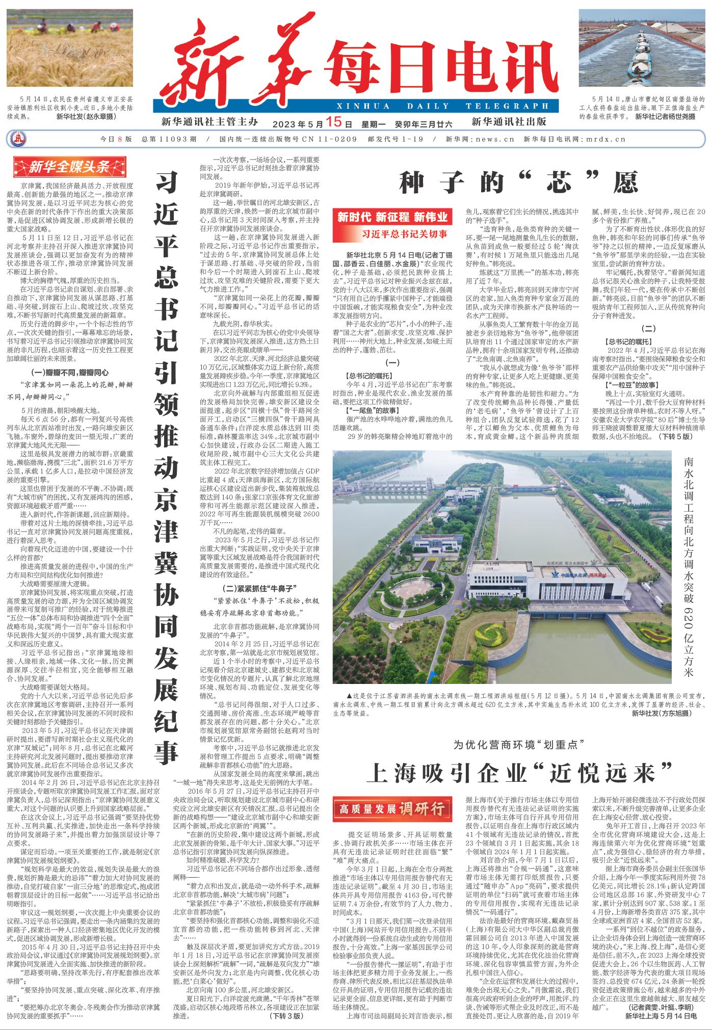 ( 2023-05-15 ) 稿件来源:新华每日电讯 要 闻