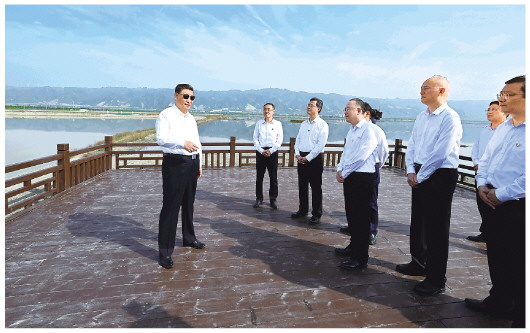 运城盐湖具有4600多年的开采史,有着深厚人文底蕴和重要历史价值。近年来,当地坚持保护优先、绿色发展,实施“退盐还湖”,盐湖保护范围内停止一切工业生产,因地制宜推动产业转型升级。习近平结合展板、展品等听取有关情况介绍,实地察看盐湖风貌。他指出,盐湖的生态价值和功能越来越重要,要统筹做好保护利用工作,让盐湖独特的人文历史资源和生态资源一代代传承下去,逐步恢复其生态功能,更好保护其历史文化价值。他强调,黄河流域生态保护和高质量发展,是党中央从中华民族和中华文明永续发展的高度作出的重大战略决策,黄河流域各省区都要坚持把保护黄河流域生态作为谋划发展、推动高质量发展的基准线,不利于黄河流域生态保护的事,坚决不能做。