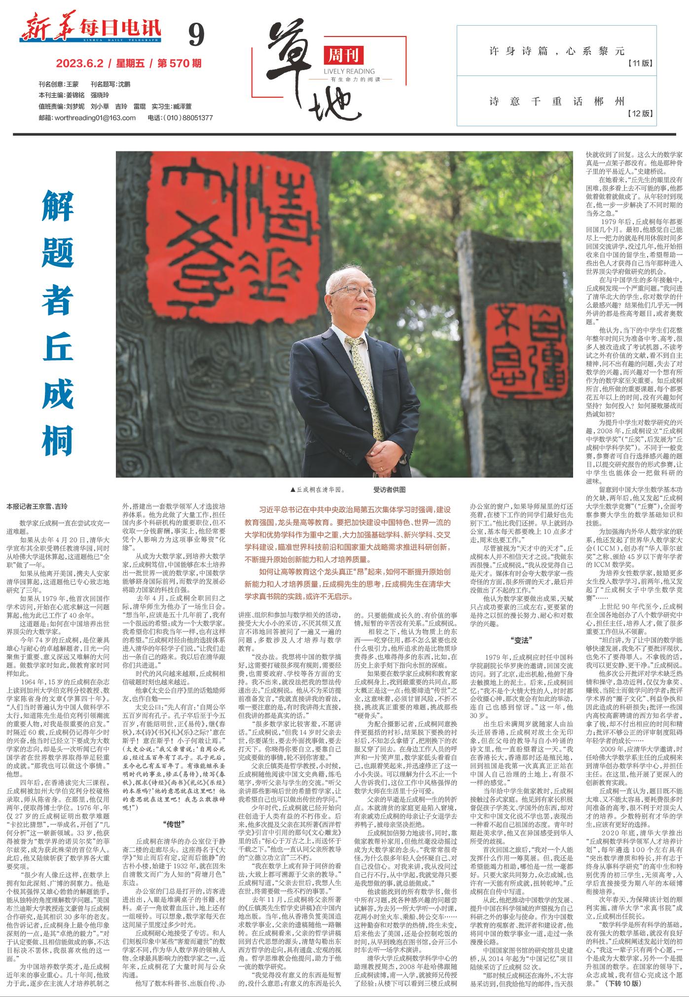 从此,他把推动中国数学的发展、提升中国在科学领域的声望视为自己科研之外的事业与使命。作为中国数学教育的观察者、批评者和建设者,他将同中国的数学事业一道,走过一条漫漫长路。