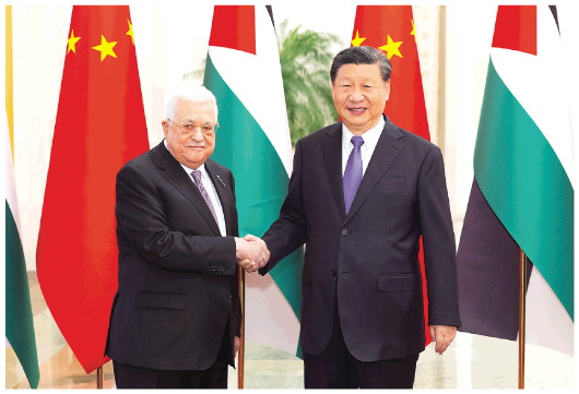 习近平指出,中巴两国是相互信任、彼此支持的好朋友、好伙伴。中国是最早承认巴勒斯坦解放组织和巴勒斯坦国的国家之一,始终坚定支持巴勒斯坦人民恢复民族合法权利的正义事业,推动巴勒斯坦问题早日得到全面、公正、持久解决。中方支持巴勒斯坦成为联合国正式会员国,将继续在多边场合为巴方仗义执言、主持公道,愿继续向巴方提供力所能及的援助,帮助巴方缓解人道主义困难、开展重建。中方愿同巴方以建立战略伙伴关系为契机,继续在彼此核心关切问题上坚定相互支持,全面推进各领域友好合作,深化共建“一带一路”合作,加快中巴自由贸易协定谈判,加强治国理政经验交流,赓续传统友好。