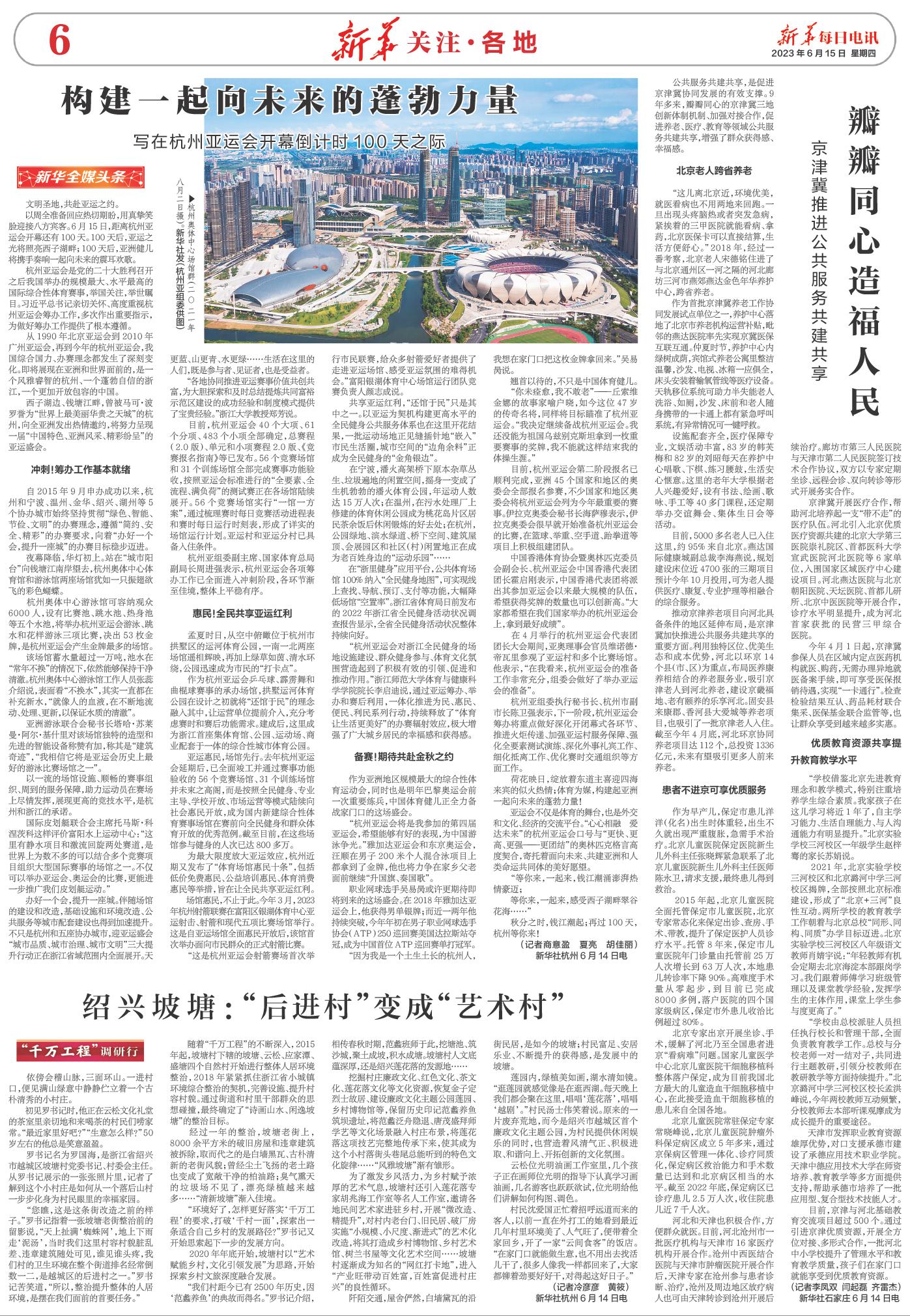 以周全准备回应热切期盼,用真挚笑脸迎接八方宾客。6月15日,距离杭州亚运会开幕还有100天。100天后,亚运之光将照亮西子湖畔;100天后,亚洲健儿将携手奏响一起向未来的震耳欢歌。