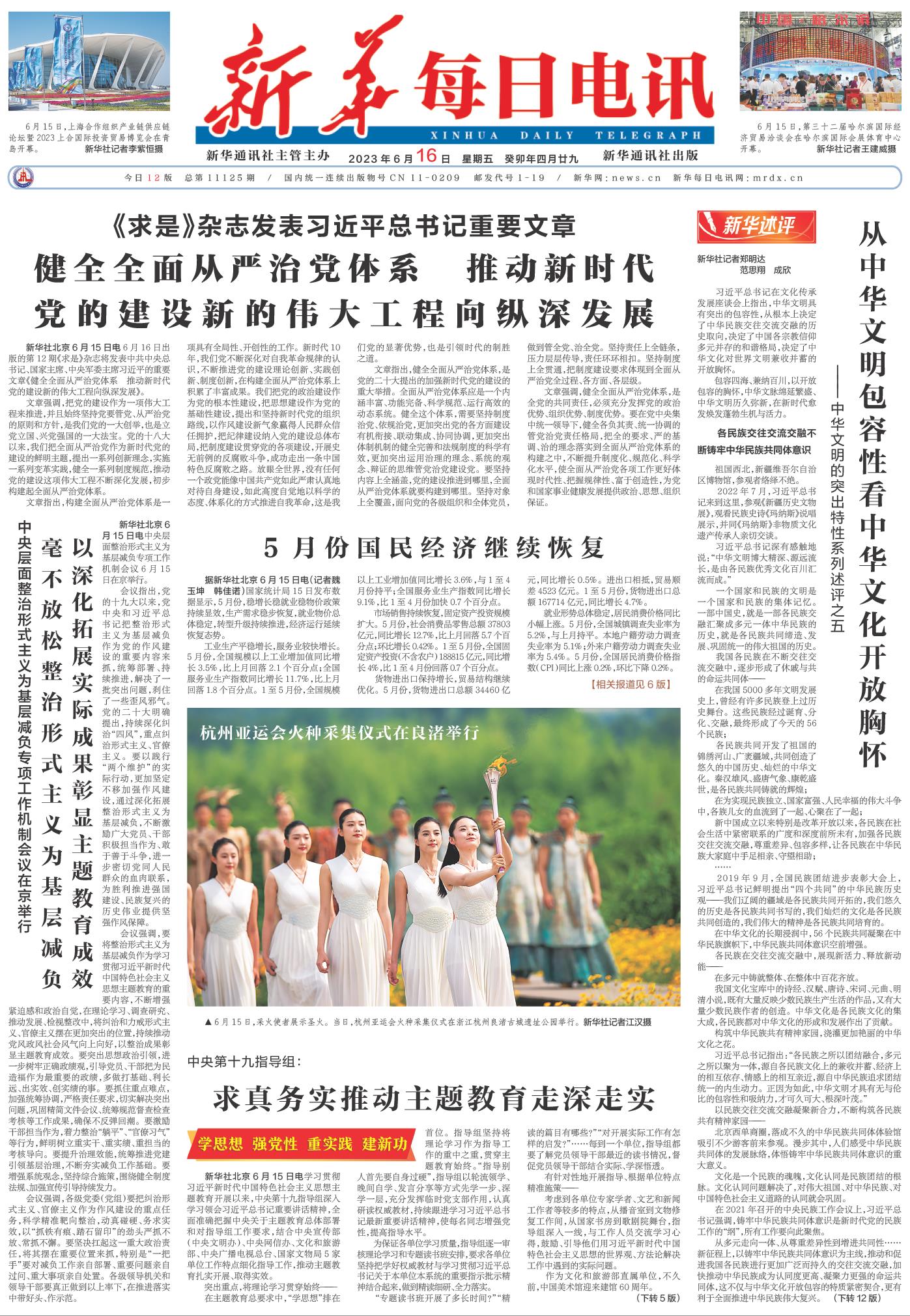 新时代中国,不断从中华民族5000多年文明史中汲取智慧力量,同世界各国携手并进,必将绘就人类文明更加壮丽的画卷。 新华社北京6月15日电