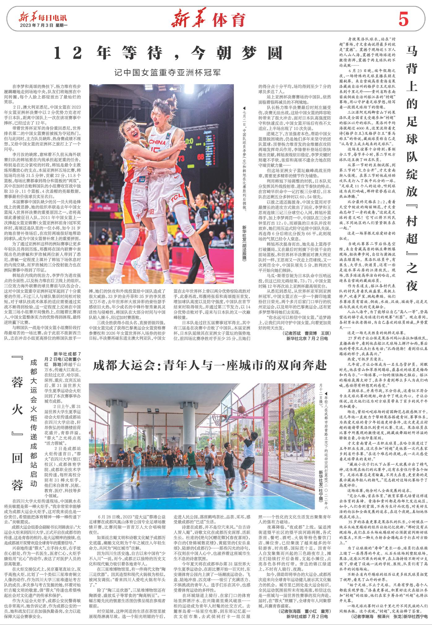 | ( 2023-07-03 ) 稿件来源:新华每日电讯 新华体育 |